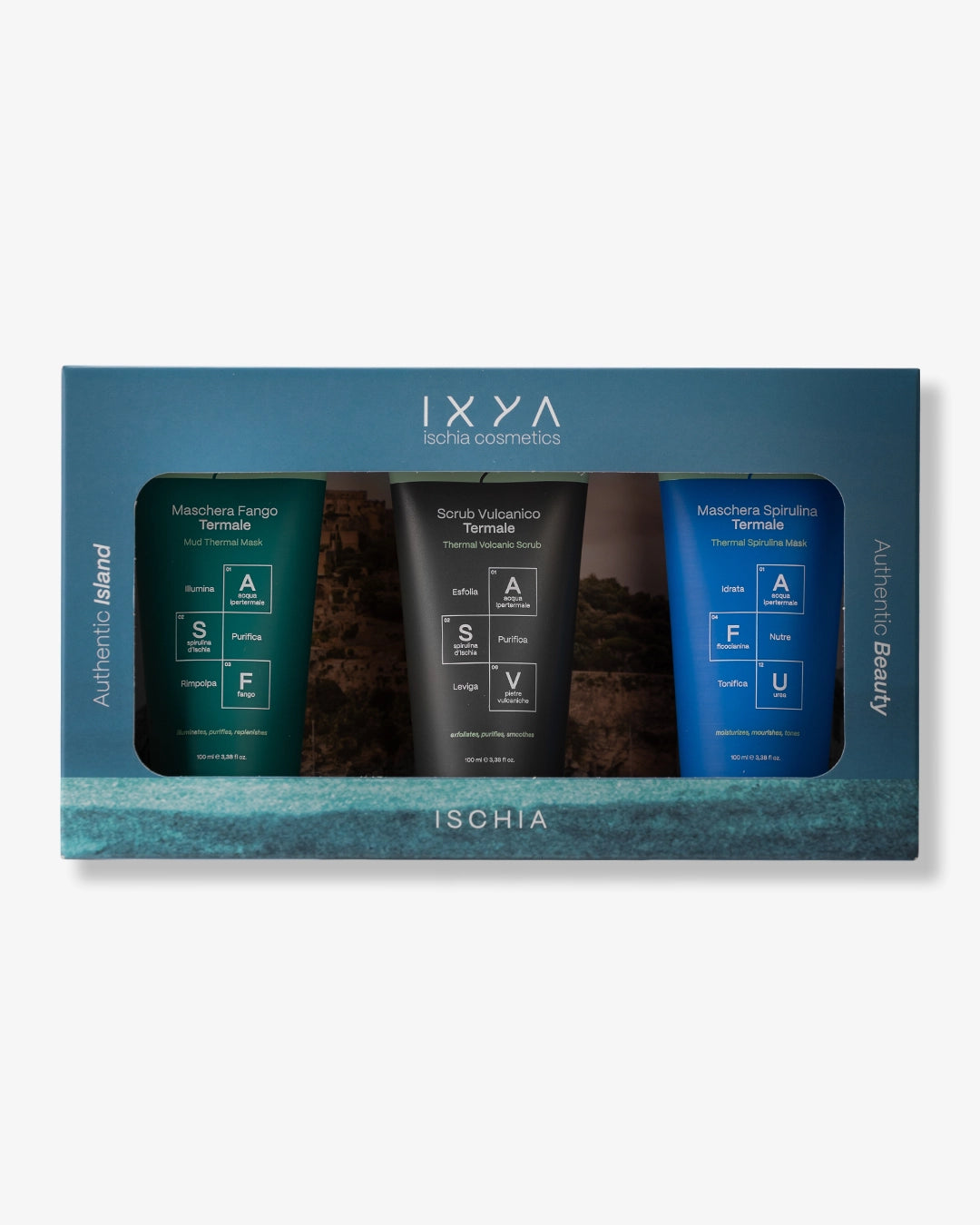Volcanic Scrub + Spirulina Mask + Thermal Mud Mask