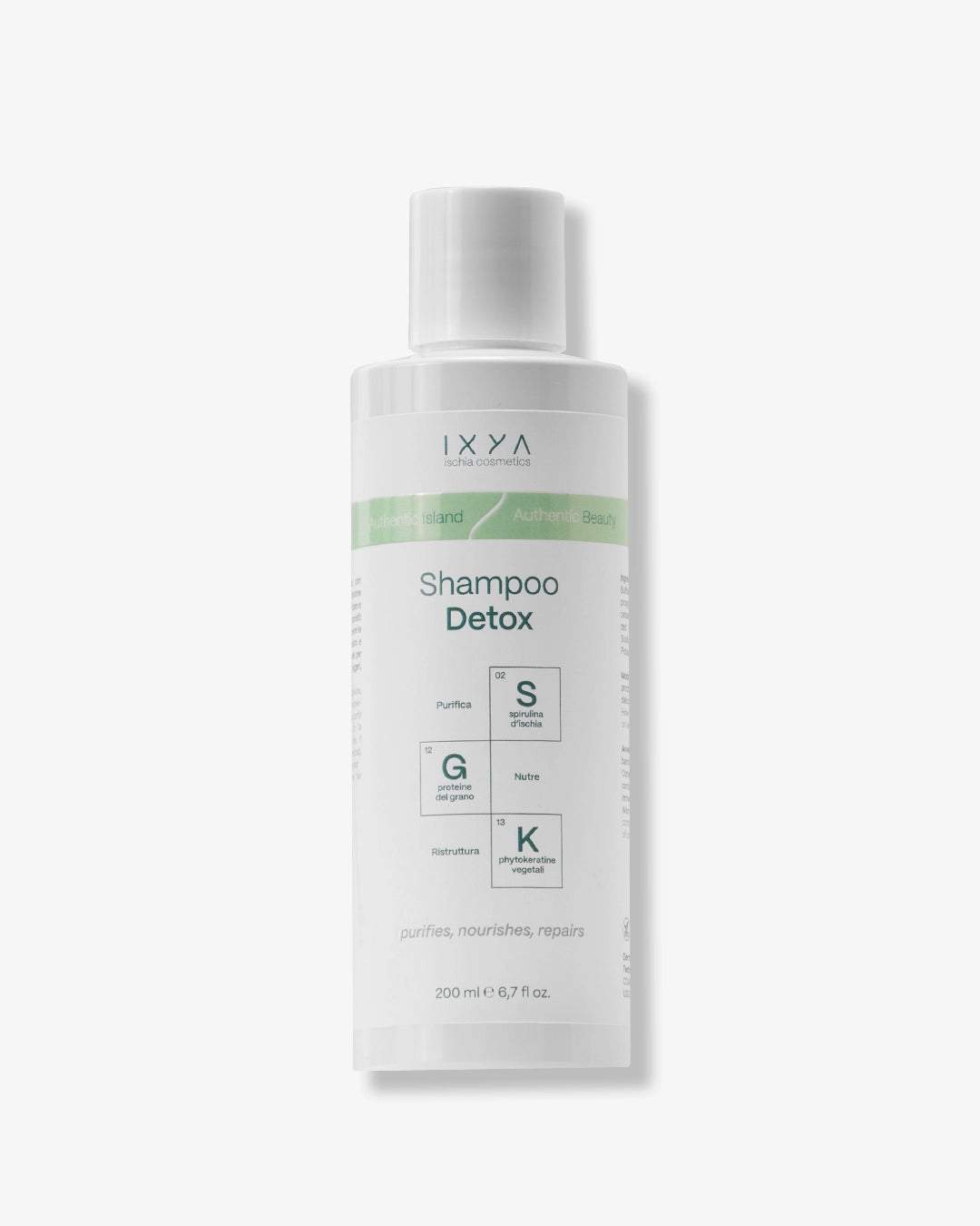 Detox Shampoo is formulated with Spirulina Concentrate, Wheat Proteins and Plant Phytokeratins , precious ingredients to purify and strengthen hair. Thanks to its detoxifying and nourishing properties, it helps remove impurities, rebalance the scalp and give strength and vitality to hair. Ideal for frequent use, it leaves hair light, soft and shiny.