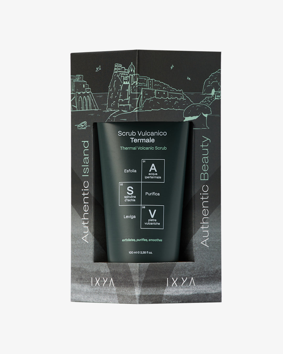 Gel scrub con miscela di polveri di lava vulcanica, dalla granulometria fine, che esfolia con delicatezza e rende la pelle più luminosa e fresca. Ossigena i tessuti e riattiva il microcircolo, promuovendo il rinnovamento cellulare, lenendo rossori grazie all’aloe vera e all’acqua di camomilla.